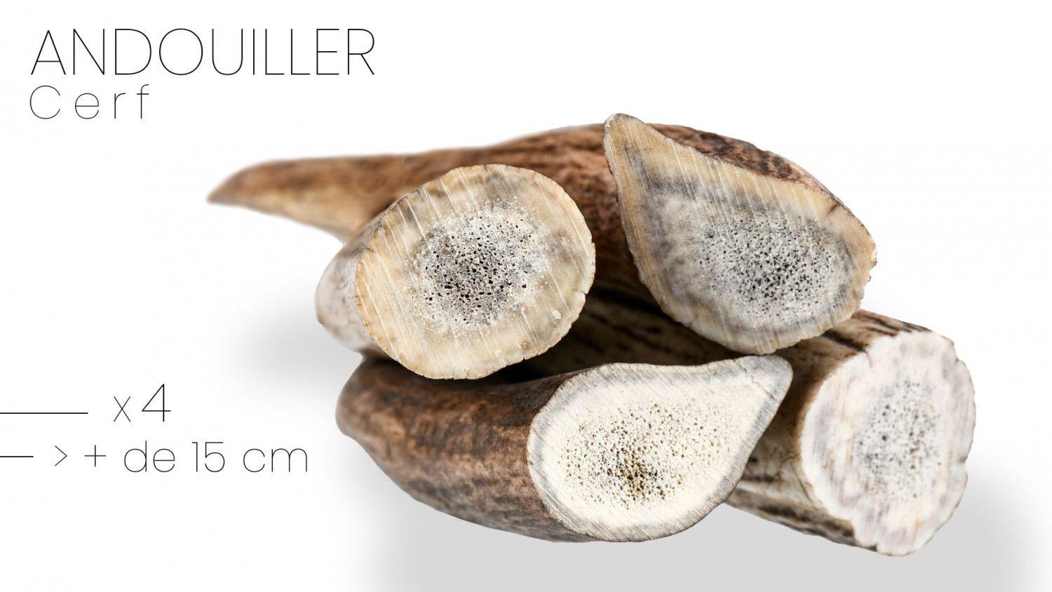 Lot de 4 andouillers de cerf européen ( + de 15 cms)