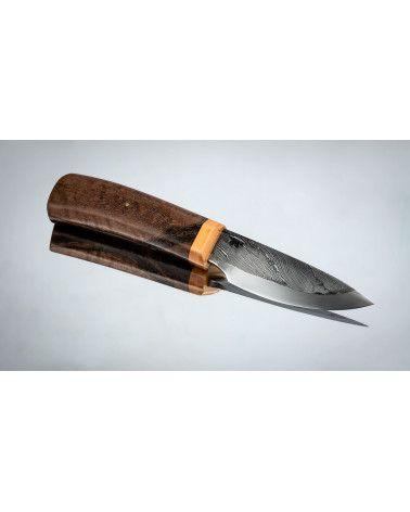 La ronce de noyer est un matériau naturel qui est souvent utilisé pour la fabrication de manches de couteaux et d'autres outils de coutellerie. Le noyer est un bois dur qui est résistant à l'usure, aux chocs et aux rayures. La ronce de noyer, quant à elle, est une partie de l'arbre qui pousse sur les branches et les racines, et qui présente une texture distincte en raison de la croissance irrégulière des fibres de bois.