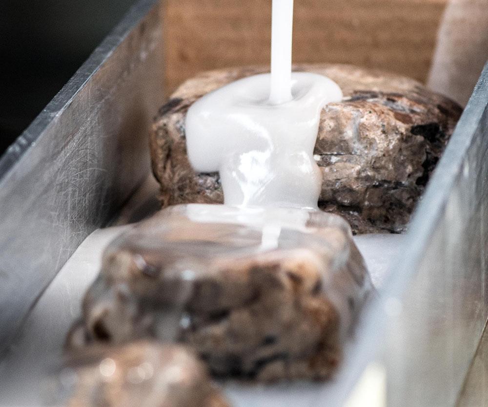 La sfida consiste nel garantire l'integrità del materiale, trovando il punto di taglio che rivelerà al meglio le sue qualità estetiche. Senza dimenticare che lavoriamo su pezzi piccoli, alcuni dei quali hanno un valore elevato. Valore che non è solo in termini di costo, ma anche di rarità.